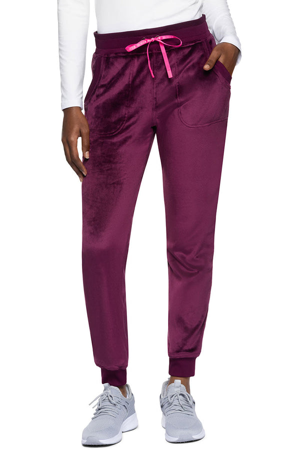 Pantalón deportivo para dama tipo jogger. Confeccionado en tejido aterciopelado con cintura elástica en tejido de punto acanalado. Cordones en color contrastante. Puños elásticos en tejido de punto acanalado dando...