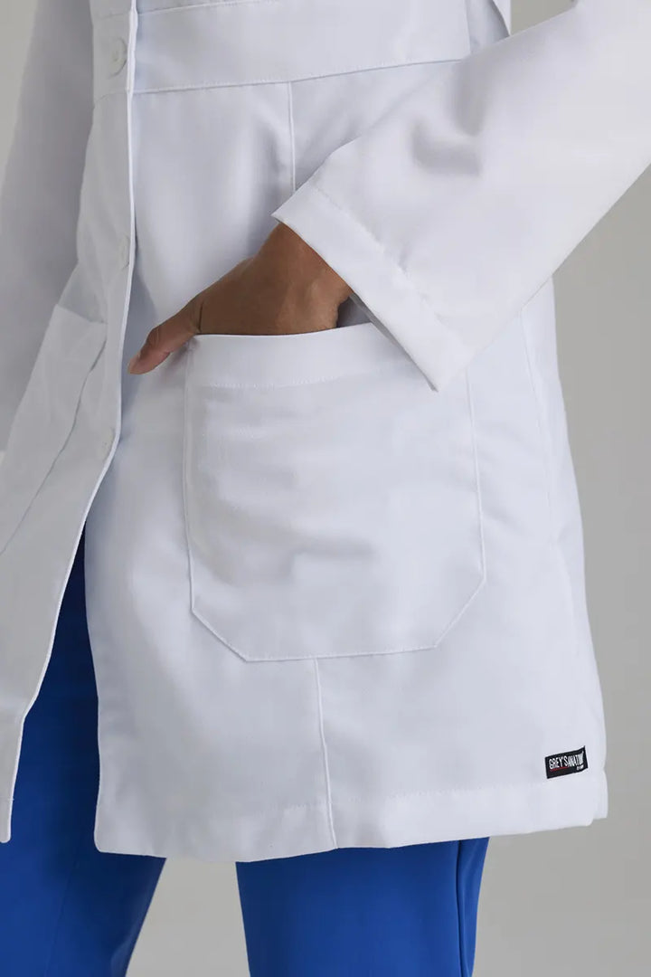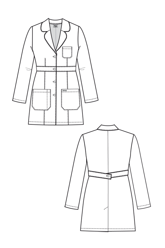 Bata profesional Grey´s Anatomy para dama, corte princesa con cinturón incrustado que resalta la cintura.