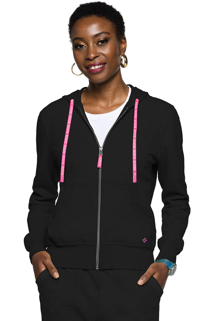 Chamarra con gorra para dama confeccionada en tejido suave.
