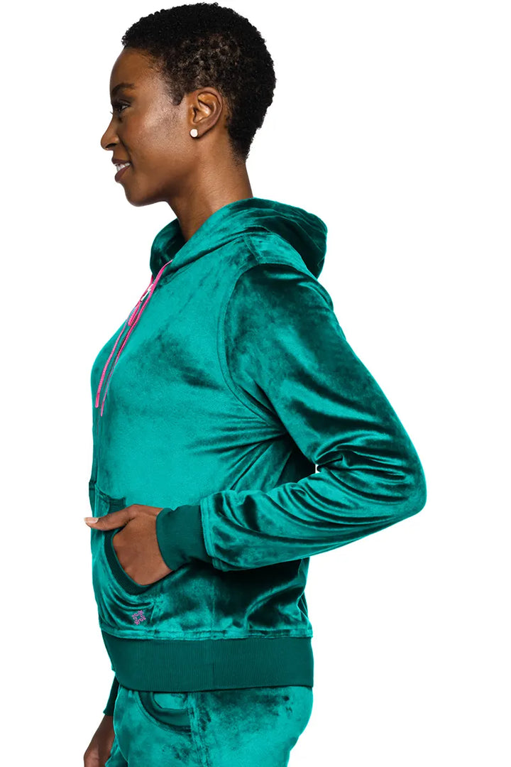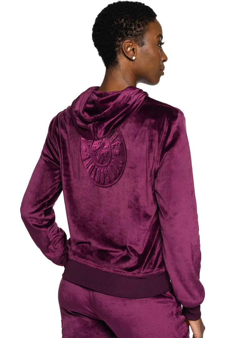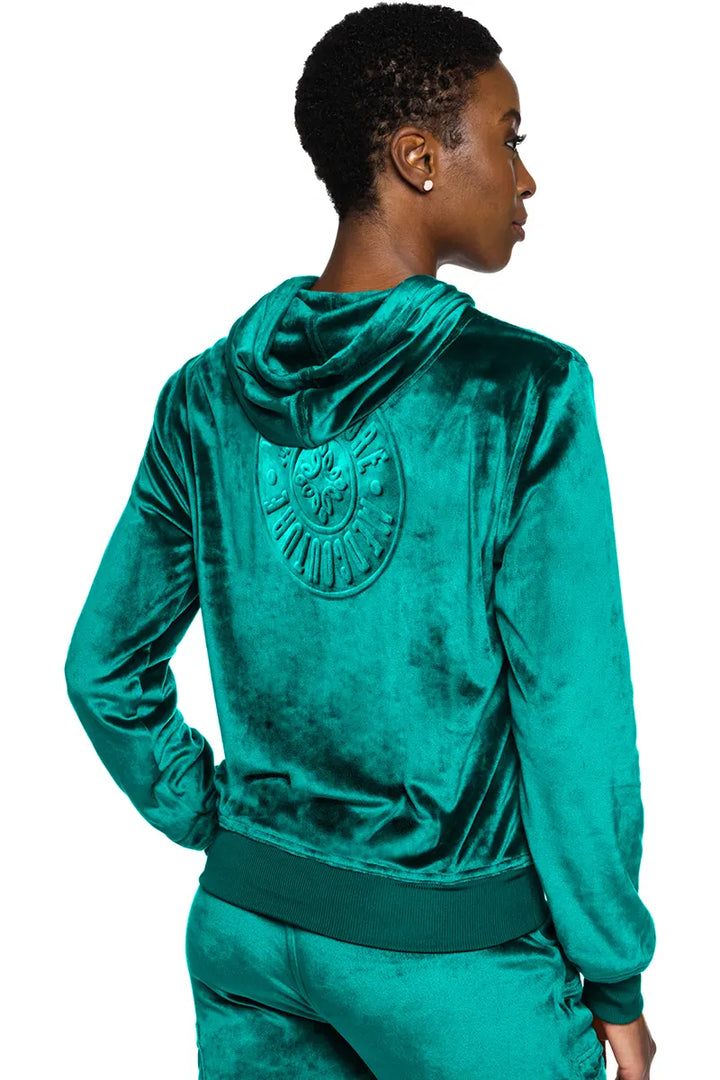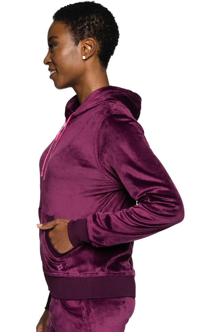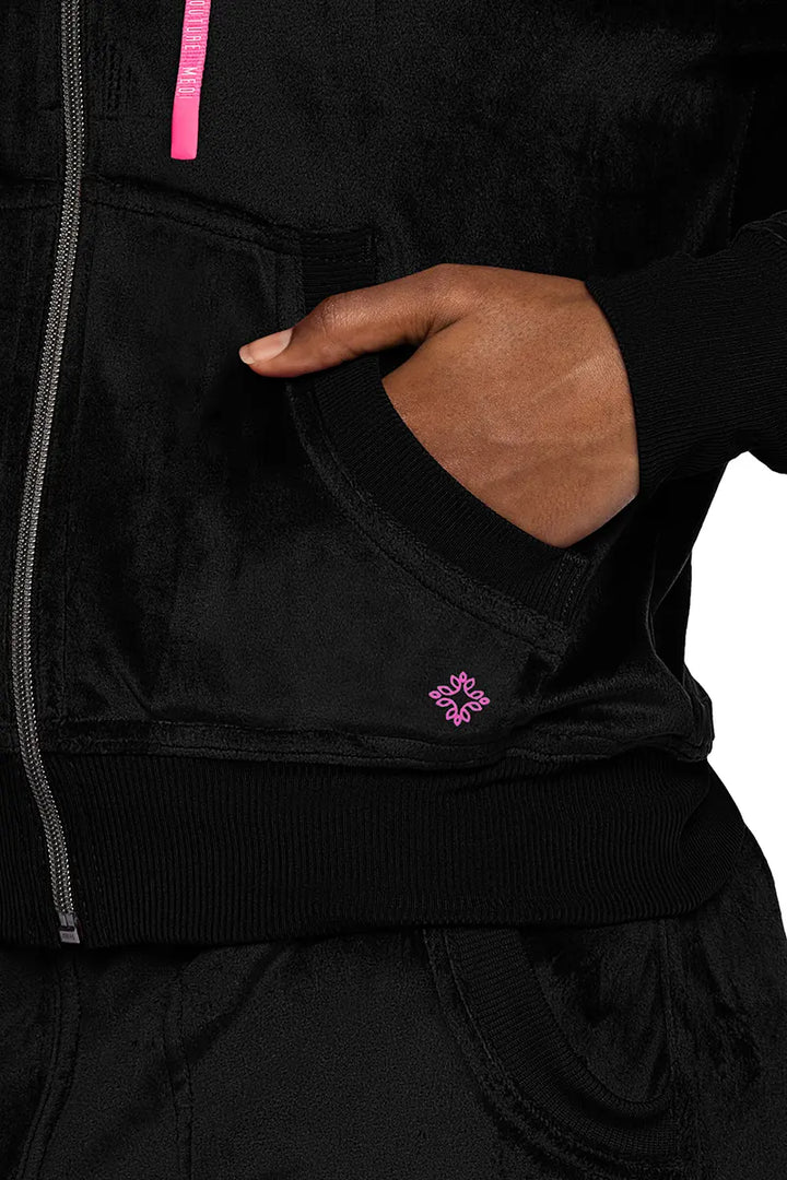 Chamarra con gorra para dama confeccionada en tejido atercipelado.