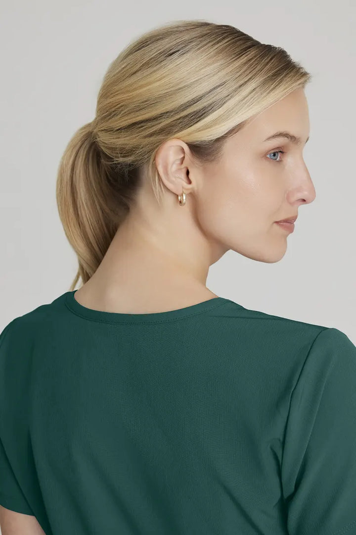 - Costuras frontales tipo princesa que se unen a costura de bolsas dando un aspecto moderno y profesional.