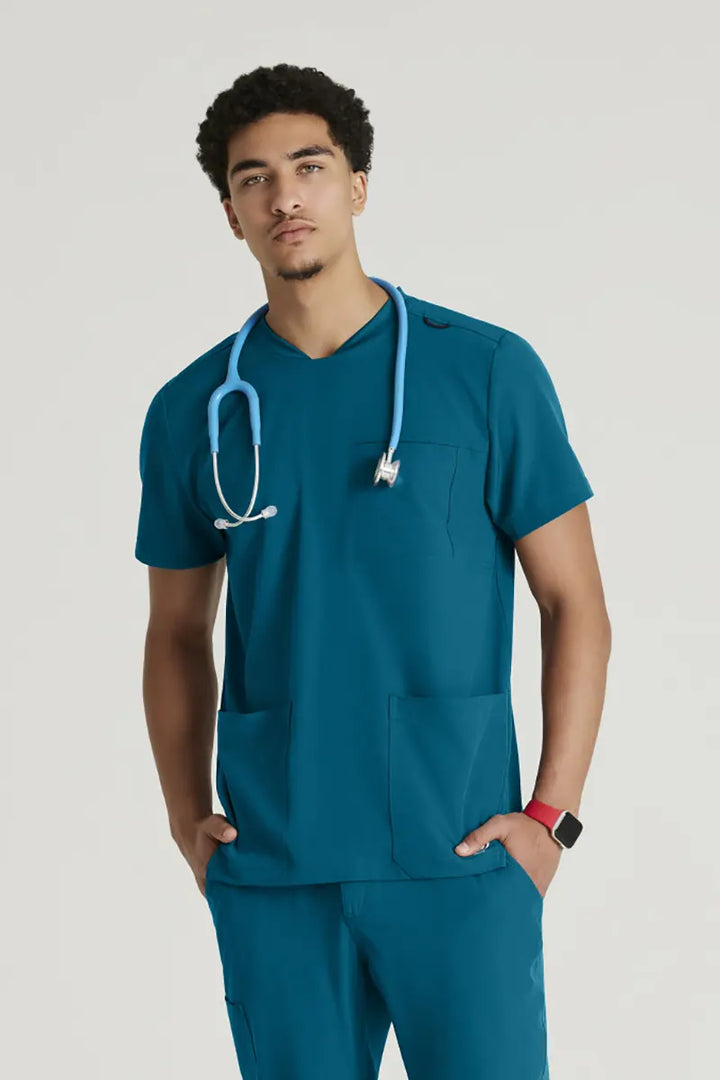 Filipina para caballero confeccionada en tejido suave con estiramiento en cuatro direcciones, elaborada con tejido ecológico con botellas recicladas.